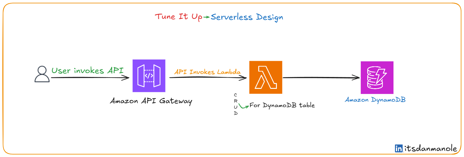 - API Gateway => Create the REST API (DynamoDBOperations) that ties everything together